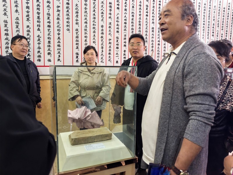 参观期间沈大师详细讲解了临夏砖雕制作工艺、市场环境、传承情况,讲解到:临夏砖雕是中国传统建筑的构建及其装饰,早在商周之际,陶制砖瓦就用在建筑上,至今最少有三千多年的历史。